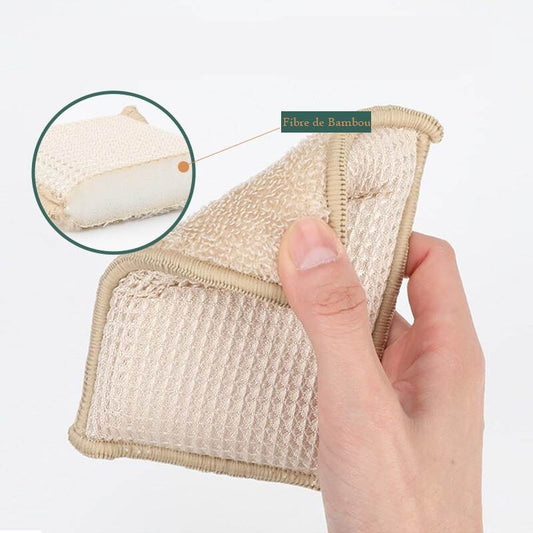 Parmi le large choix d'Éponges que nous proposons vous pouvez opter pour la nouveauté, l'Éponge en Fibres de Bambou ! 100% en Bambou, ces éponges répondent parfaitement à tous les besoins en plus d'être sans odeur car le Bambou a cette capacité de les capter. Super absorbante, idéale pour la vaisselle il suffit seulement de la faire sécher à plat pour l'utiliser de nouveau.